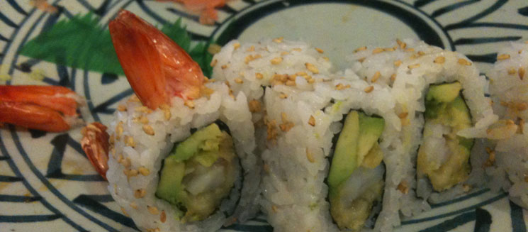 Sushi is one of my favorite foods. I love to watch it being made fresh right there in front of you. Sitting at the sushi bar, drinking hot green tea and eating spicy ginger, dipping the sushi pieces in wasabi diluted with soy sauce. That is a good time to have. I don't eat really exotic sushi. Some has cooked ingredients. Sticky rice and seaweed hold it together. The sesame seeds make it even prettier. Plus the plates are decorative too. Almost too pretty to eat. Food as art.